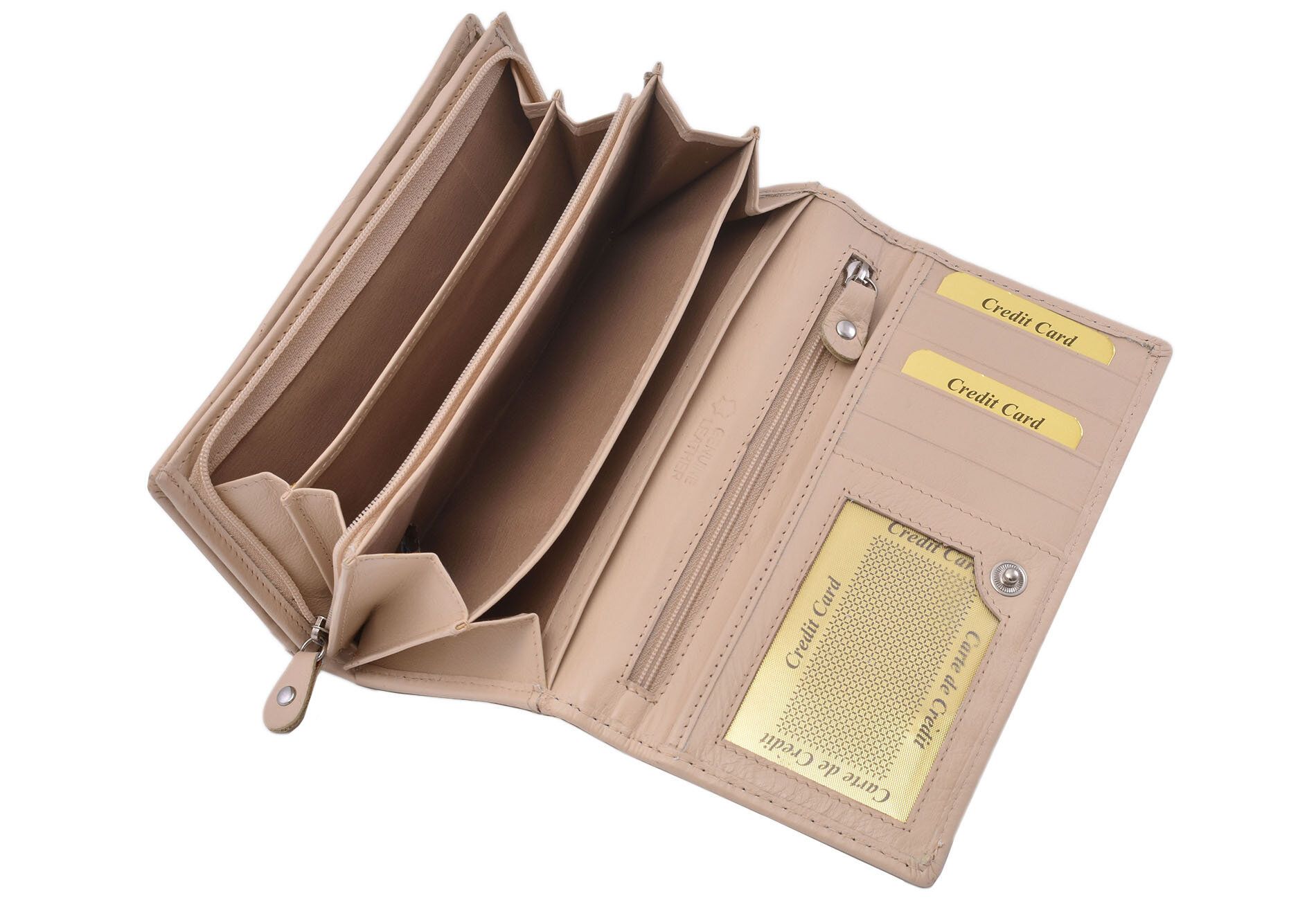 Elegantná dlhá peňaženka v béžovej farbe, vyrobená z príjemnej kože, poteší svojím jemným a sofistikovaným dizajnom. Zdobená dvojitým šitím na prednej strane, dodáva štýlový nádych, ktorý ocení každá žena s citom pre detail. Kožené peňaženky s takýmto dizajnom poskytujú nielen estetickú hodnotu, ale aj praktické riešenie s dostatočným priestorom pre karty, bankovky a mince. Ideálny doplnok pre ženy, ktoré hľadajú spojenie elegancie a funkčnosti.