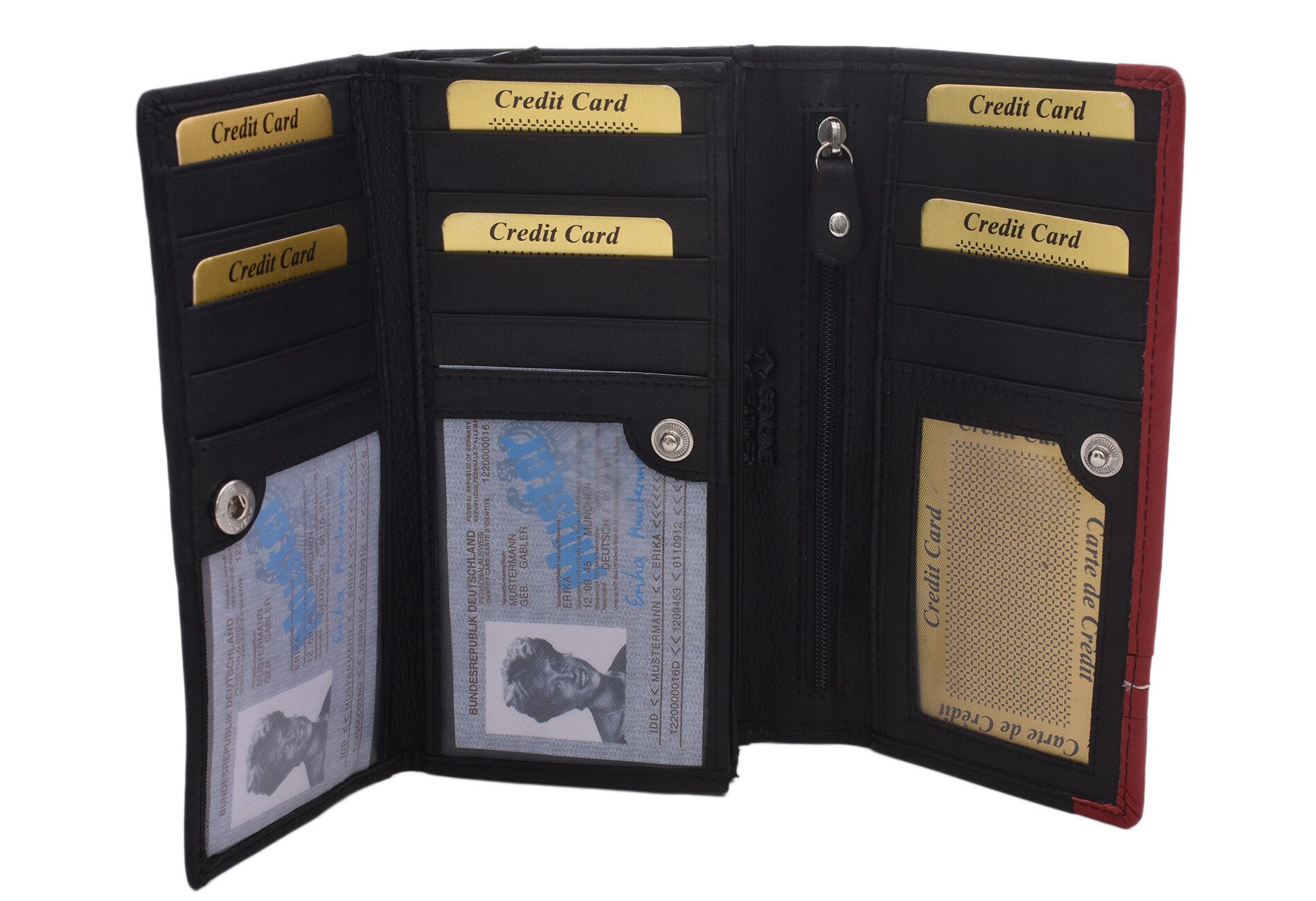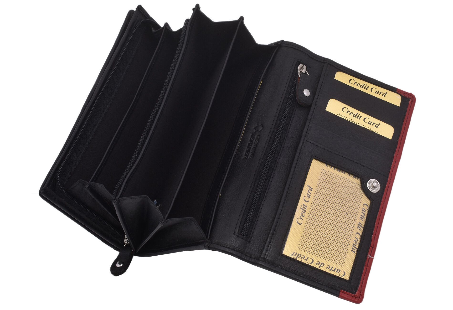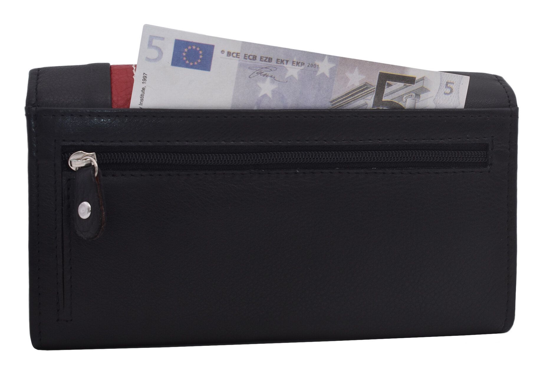 Elegantná dámska peňaženka z mäkkej teľacej kože je stelesnením luxusu a praktickosti. Jej dlhý tvar poskytuje dostatok priestoru na všetky vaše karty a ďalšie osobné veci. S výrazným zdobením, ktoré pridáva štýlový nádych, sa táto peňaženka stane vaším obľúbeným doplnkom. Čierna farba v kombinácii s výraznými červenými detailmi vytvára sofistikovaný a moderný vzhľad, ktorý dokonale doplní každý outfit. Táto peňaženka je ideálnym spojením elegancie a funkčnosti.