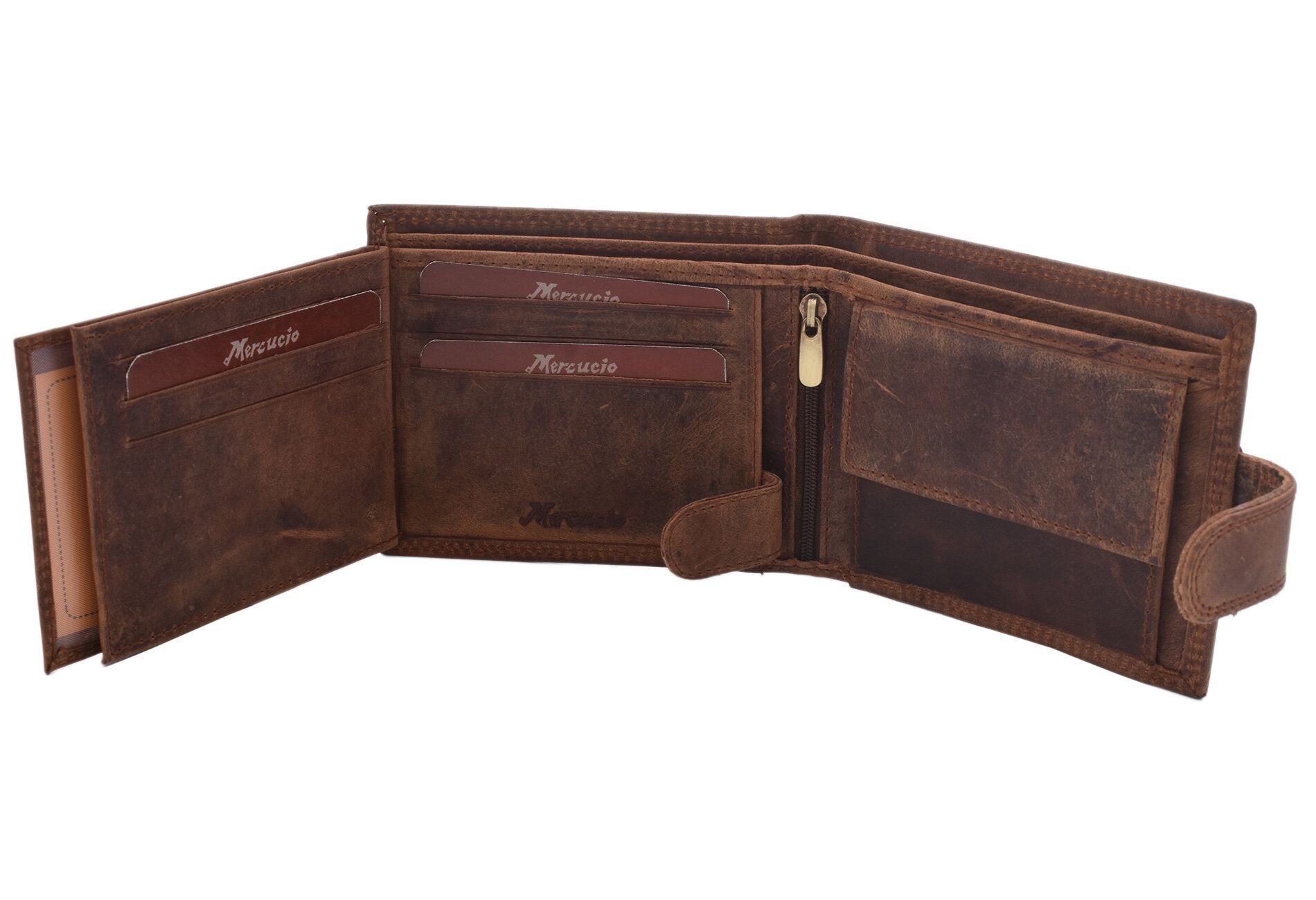 Pánska kožená peňaženka v hnedom odtieni. Tento model je veľmi obľúbený u zákazníkov kvôli šikovnému rozloženiu peňaženky - veľa priestoru na karty, vnútorné zapínanie a veľké vrecko na mince. Výhodou peňaženky je aj vonkajšie zapínanie, ktoré preferujú muži, ktorí zvyknú nosiť viac vecí v peňaženke. Aj keď sa všeobecne neodporúča peňaženku "prepchávať", kožený materiál peňaženky je kvalitný a znesie viac ako jej umelý náprotivok.