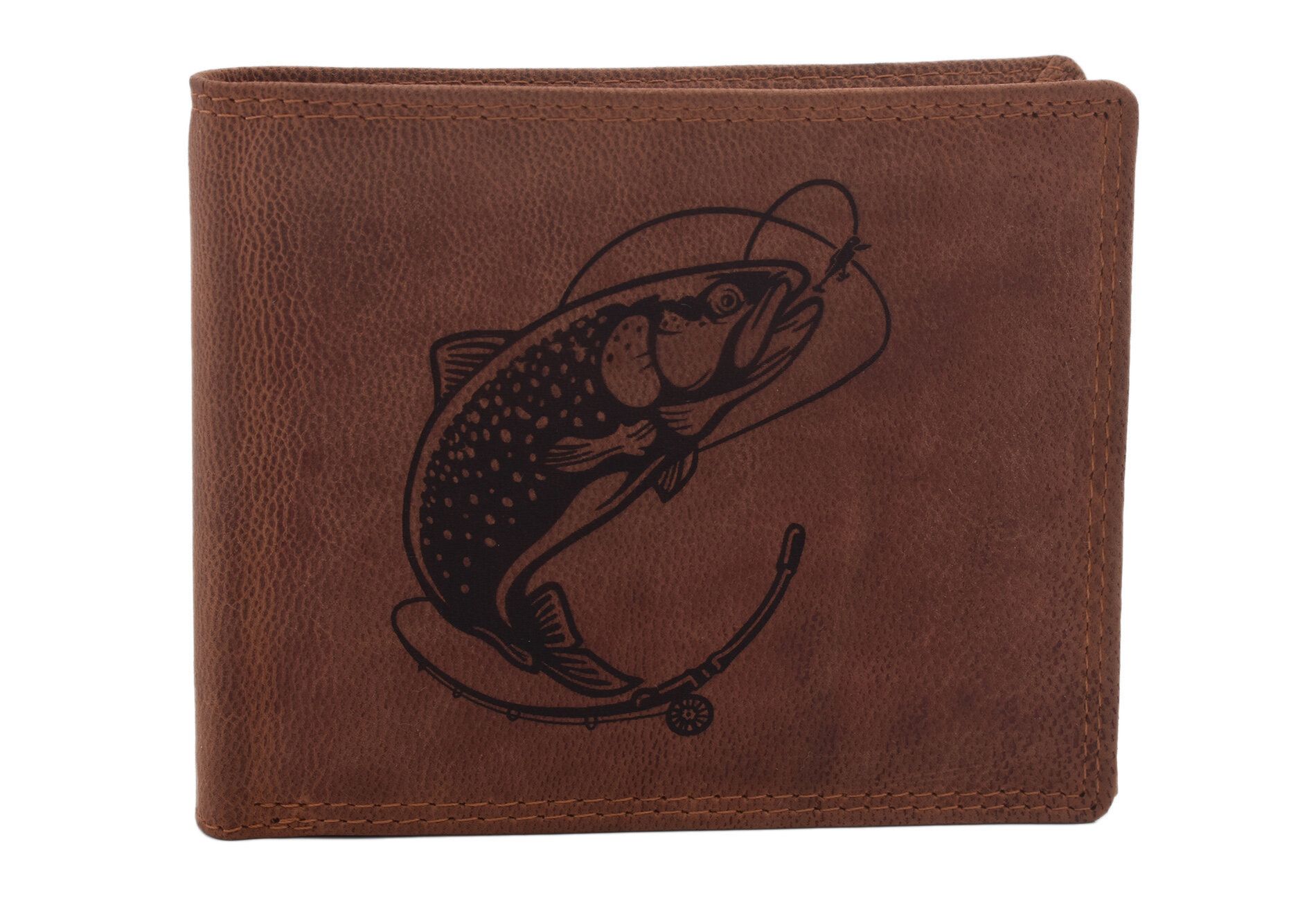 Pánska kožená peňaženka MERCUCIO svetlohnedá vzor 49 pstruh s udicou 2911908