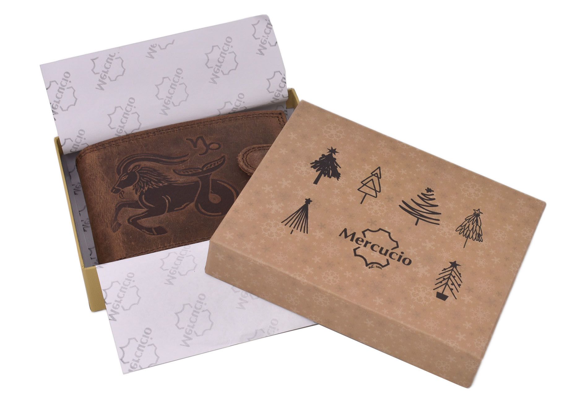 Peňaženka s motívom kozorožca z pravej kvalitnej kože a darčekovou krabičkou v cene.