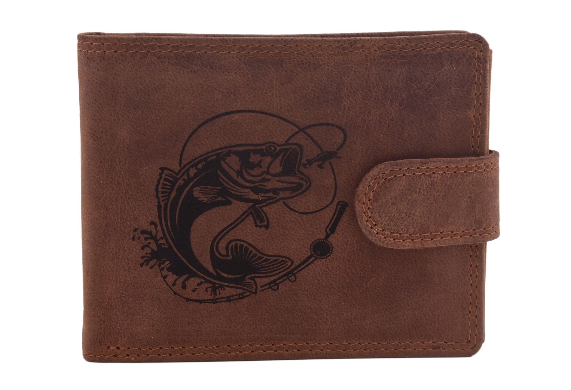 Pánska kožená peňaženka MERCUCIO svetlohnedá vzor 50 zubáč s udicou 2911906